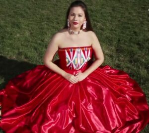 Isabella Aiukli(Eye⸍ ah klee)Cornell gained attention in 2018 when she wore her red prom dress bearing an appliqué across the bodice with Choctaw heritage symbols.